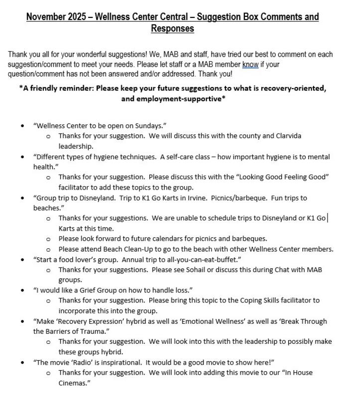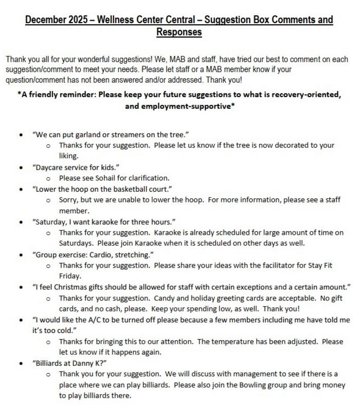 Please join us in completing our annual Satisfaction Survey. This survey provides Wellness Center Central with valuable information that helps us in ensuring our services reflect what the membership is interested in seeing at WCC.